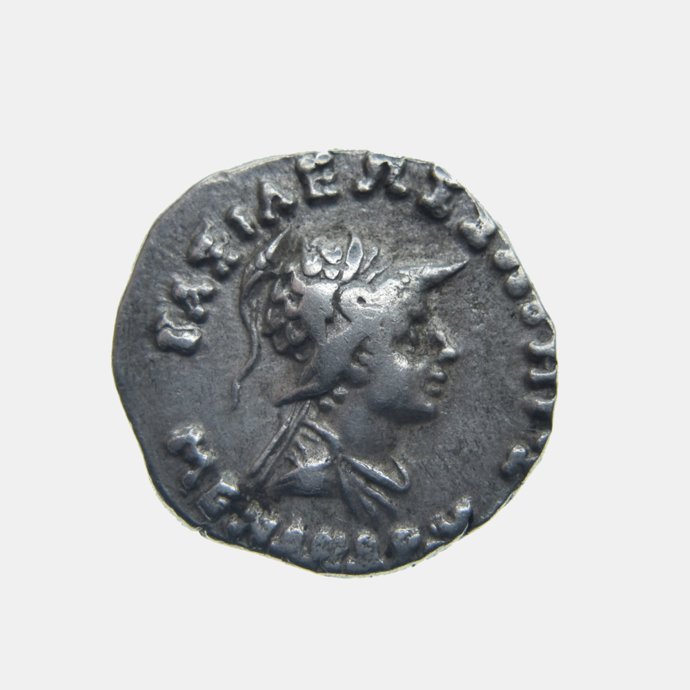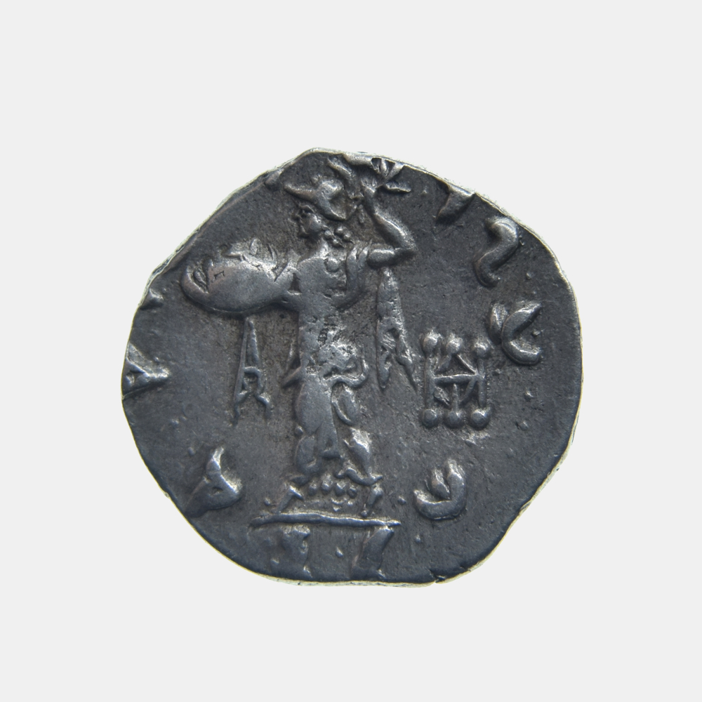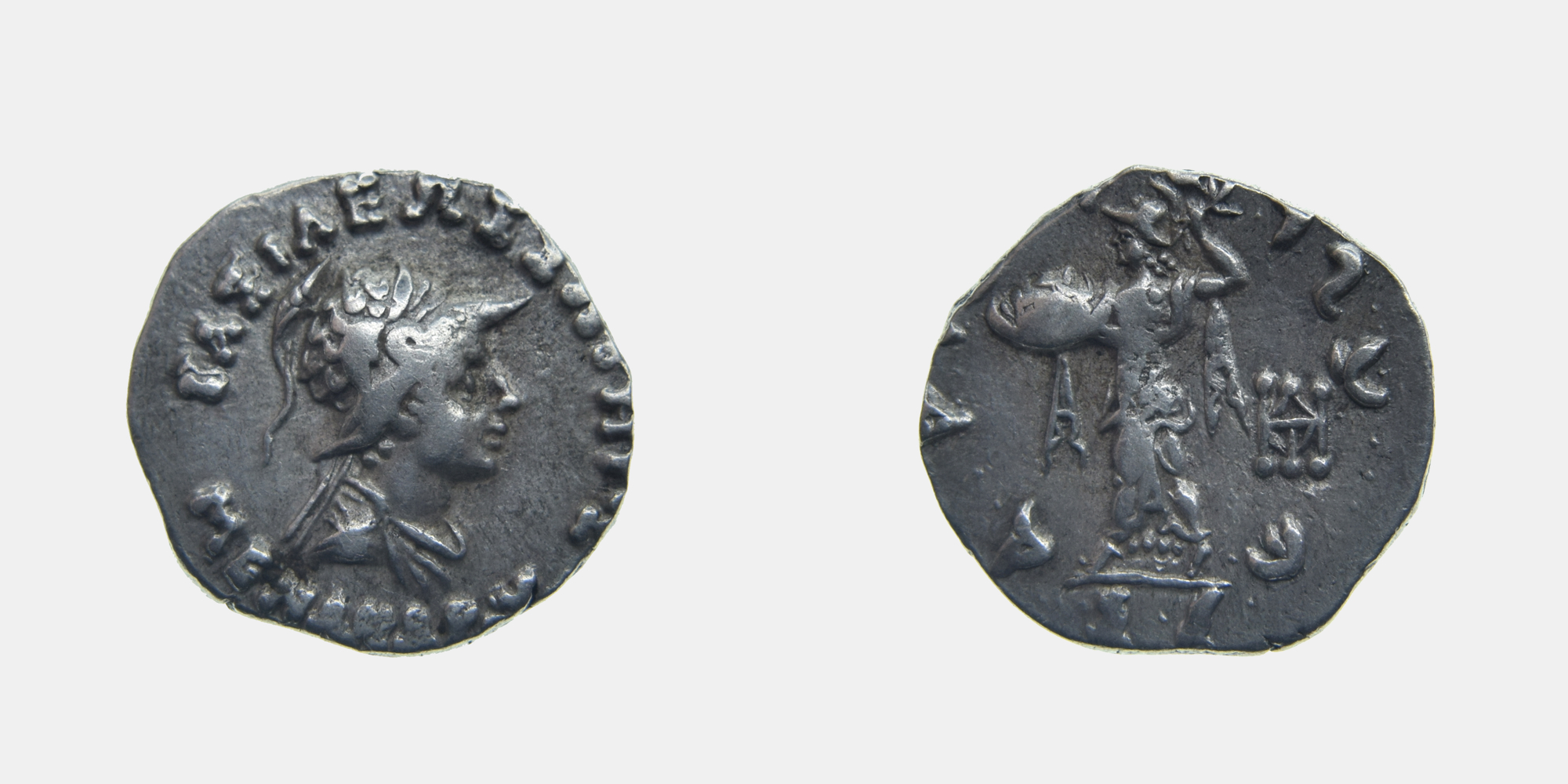 A silver drachm of the Indo-Greek Kingdom, during the reign of Menander I ‘Soter’.